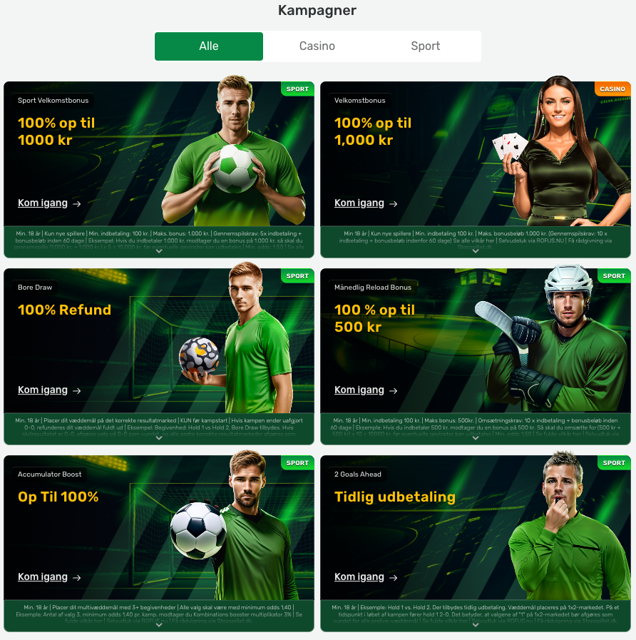 Kampagnerne opdateres løbende, så der kan være nye muligheder alt efter sæson og sportsbegivenheder